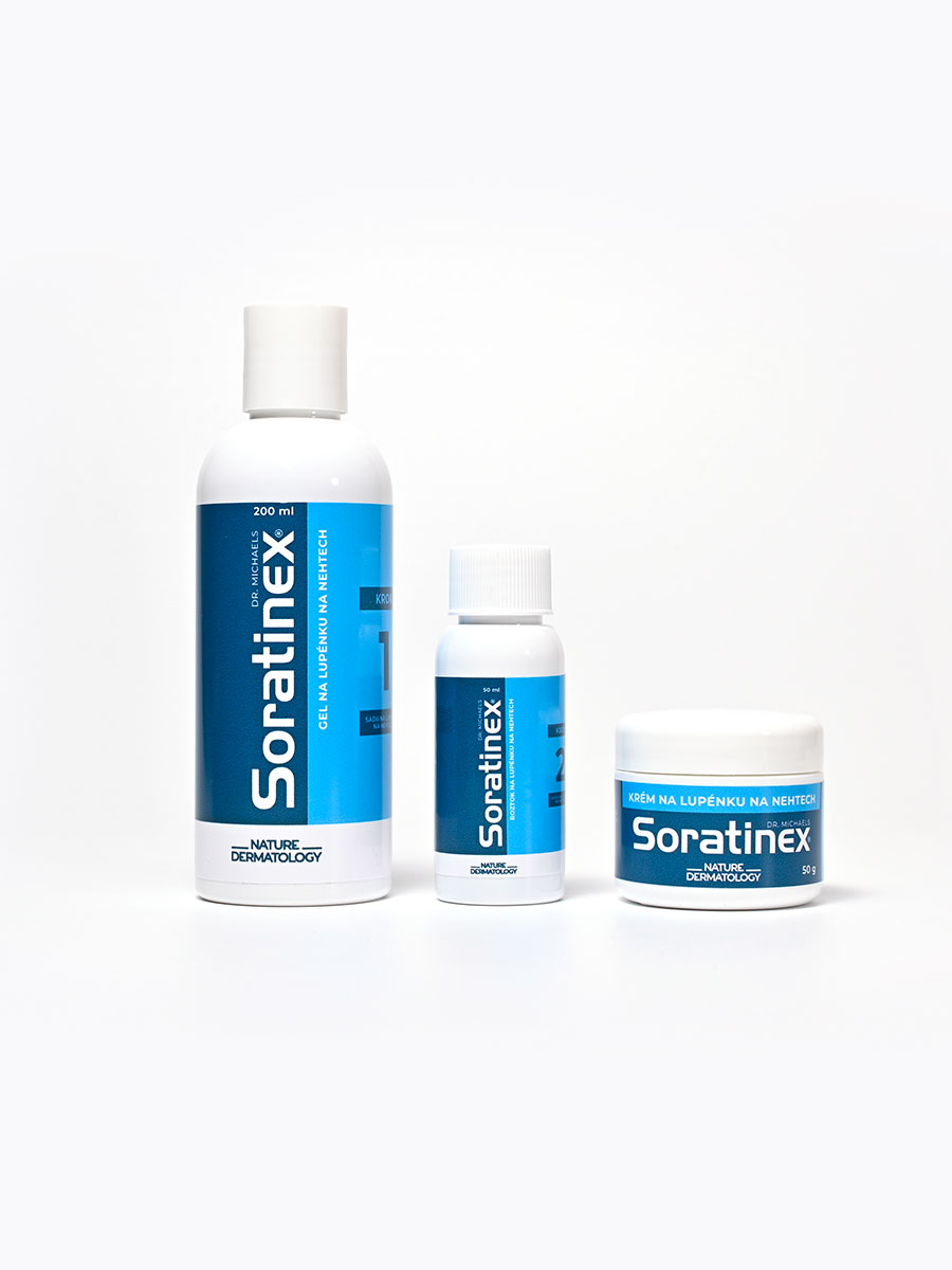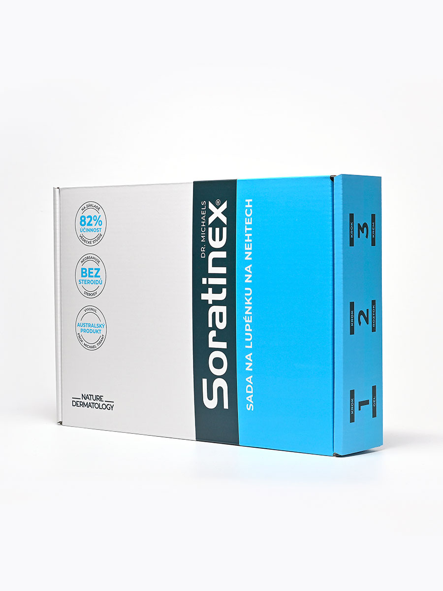 Dermatologická sada slouží pro péči o nehty a oblast v okolí nehtu postiženou projevy lupénky. Napomáhá odstranění projevů lupénky a ke zmírnění zanícení a šupinatění způsobených lupénkou.Dermatologická sada obsahuje tři přípravky, které se vzájemně doplňují. Gel obsahuje širokou řadu ovocných kyselin, které mají keratolytický účinek a pomáhají odstranit odumřelé buňky pokožky pod nehty a kolem nehtů. V druhém kroku aplikujeme antimikrobiální roztok, který obsahuje přírodní látky podporující léčení symptomů, jak při plísňových infekcích, tak i u lupénky. Krém aplikovaný ve třetím kroku podporuje celou terapii díky protizánětlivým a antioxidačním vlastnostem. Podporuje hojení. Sada obsahuje tři vzájemně se doplňující produkty, které se aplikují ve třech krocích. Sadu aplikujte jednou denně. Jako první krok použijte gel tak, že jej naneste na navlhčené postižené nehty a jejich okolí a necháte jej působit 2-3 minuty. Poté gel opláchněte teplou vodou. Nevysušujte. Gel zajišťuje změkčení odumřelé kůže tak, aby přípravky v dalších krocích na zasažených místech správně fungovaly. Proces hojení totiž probíhá i pod nehty. Ve druhém kroku aplikujte roztok. K nanesení přípravku můžete použít vatovou tyčinku nebo kosmetický tampón. Aplikujte roztok pečlivě na všechna zasažené místa. Neoplachujte. Roztok nechte volně zaschnout. Ve třetím kroku naneste stejným způsobem protizánětlivý krém, který díky antioxidačním vlastnostem podporuje hojení a zklidňuje postiženou pokožku i pod nehtem. Krém neoplachujte. Nechte jej volně vstřebat. Po ustoupení projevů sadu nepoužívejte.